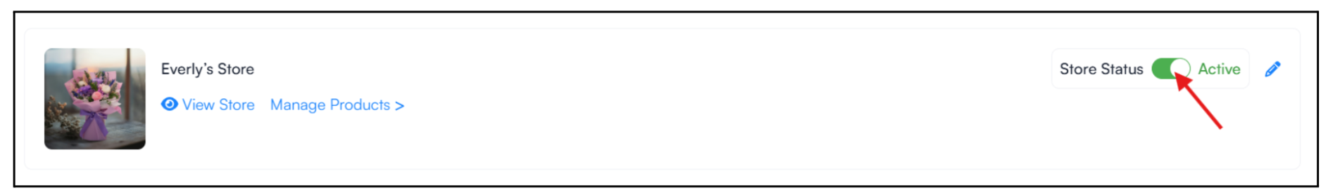 Once the payment information has been added, return to the Stores dashboard and toggle the Store Status to Active.
